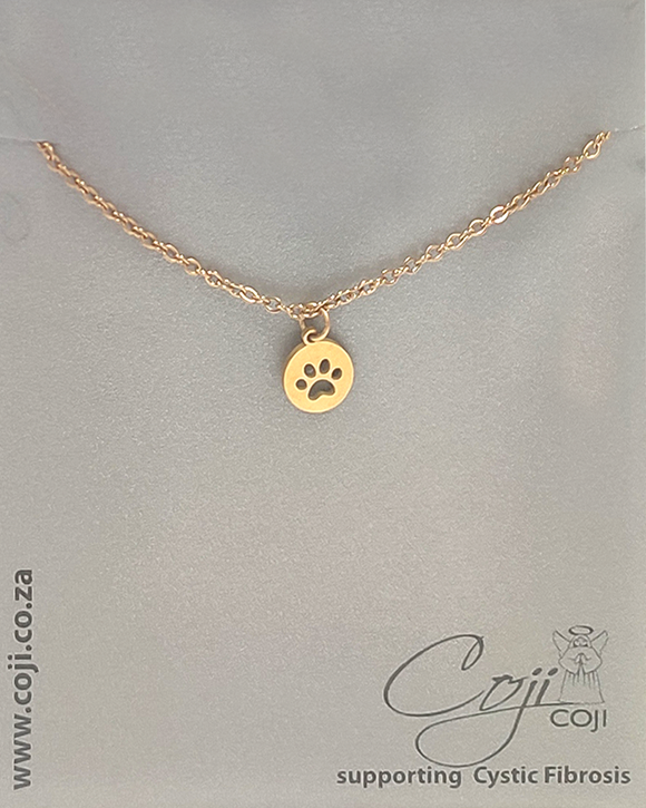 NECKLACE PAW PRINT IN CIRCLE ON GOLD STAINLESS STEEL CHAIN