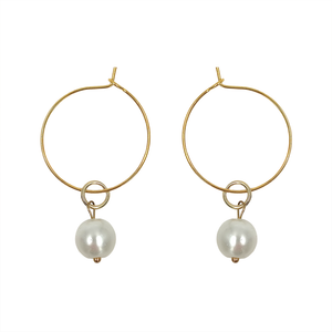 EARRING HOOP WITH PEARL PENDANT GOLD