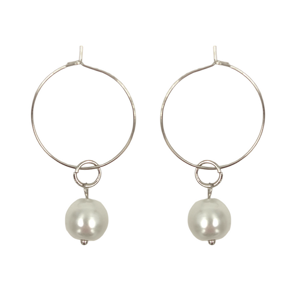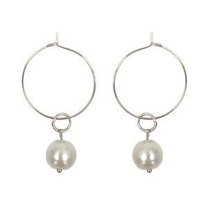 EARRING HOOP WITH PEARL PENDANT SILVER
