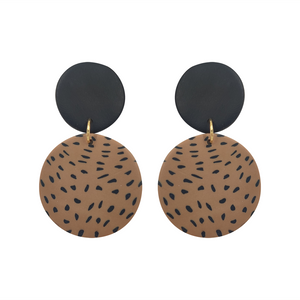 EARRING OVAL DANGLE BLACK AND WHITE LEOPARD PRINT